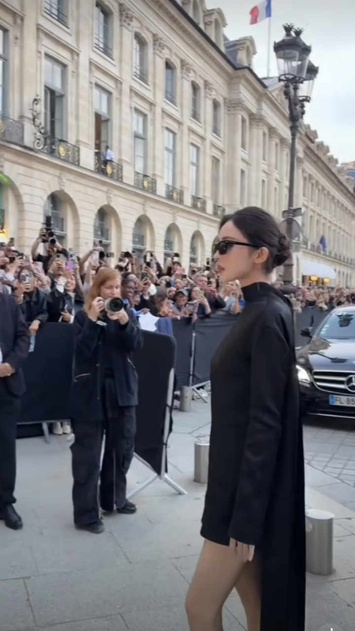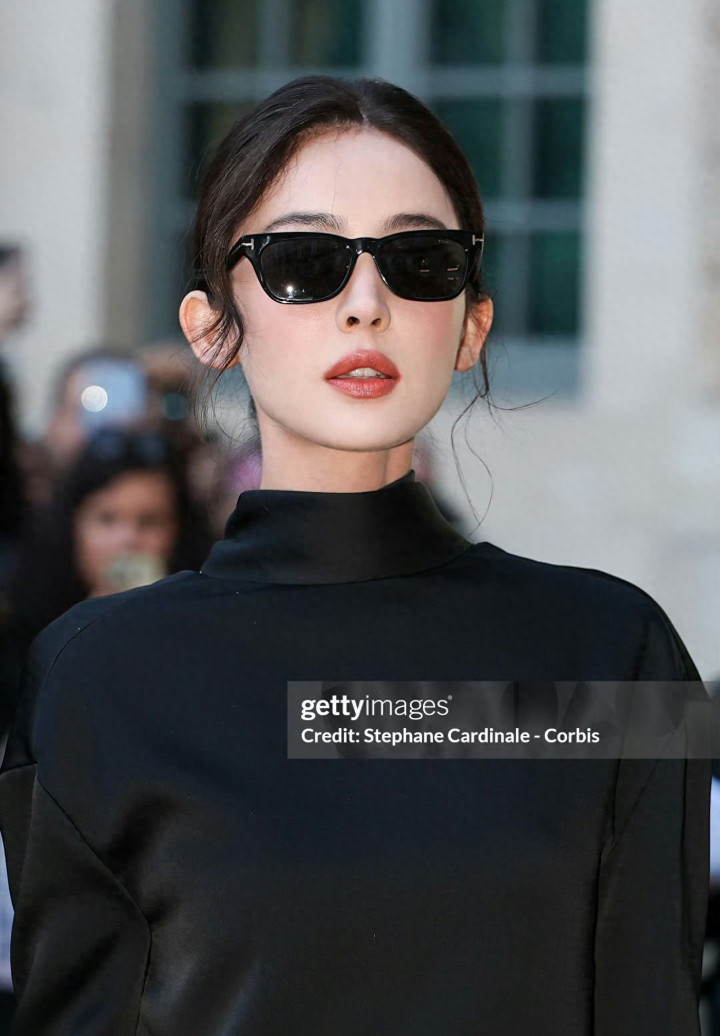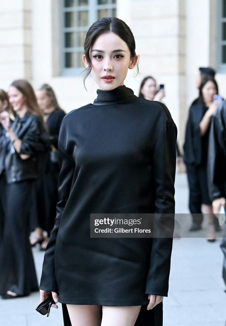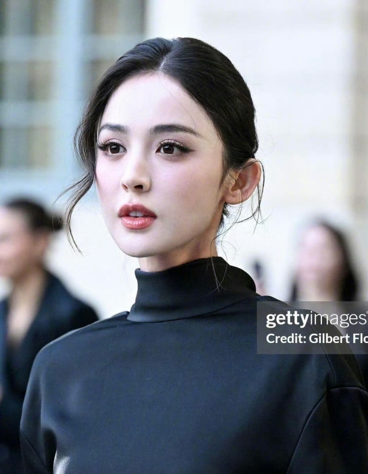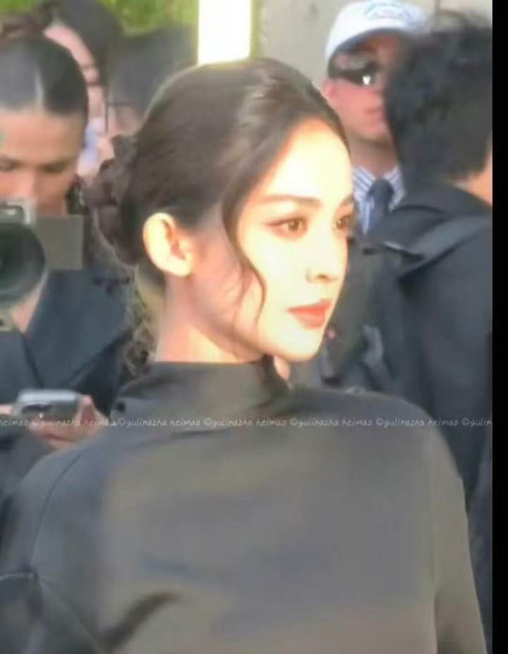 娜扎时装周造型, 黑色短裙丸子头简简单单, 但完全不失星光太美了