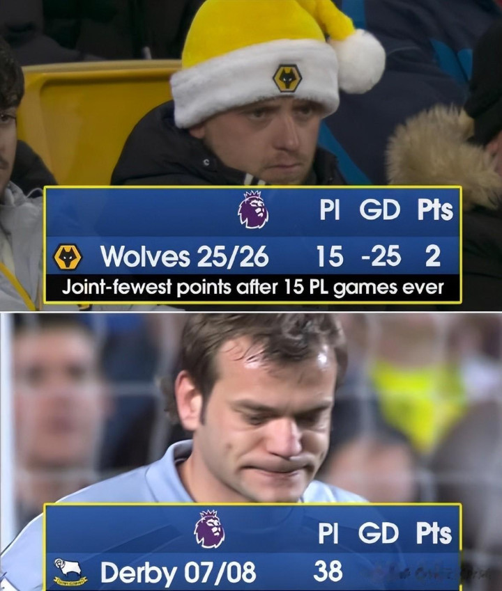 被曼联痛击后,狼队只能无奈接受一个残酷的现状,那就是这支球队已经追平了英超历史上最差开局。至此,狼队本赛季英超前15轮仍未尝一胜,战绩为2平13负,且最近8场联赛均遭遇失利。狼队在英超联赛中遭遇了8连败,更是创下队史顶级联赛最长连败纪录,