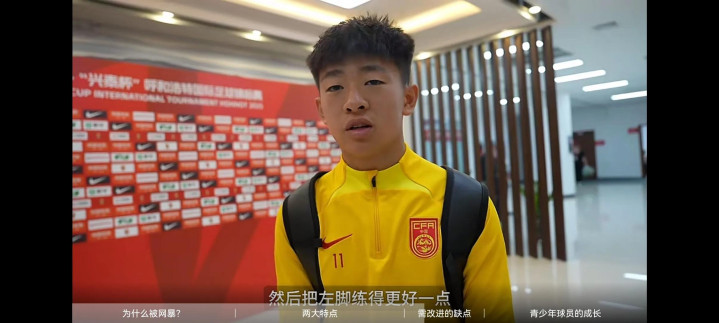 此前在和呼和浩特四国赛一场比赛后邝兆镭接受一位自媒体老师的采访时,谈到了自己的短板——把头抬起来和左脚技术需要练得更好。