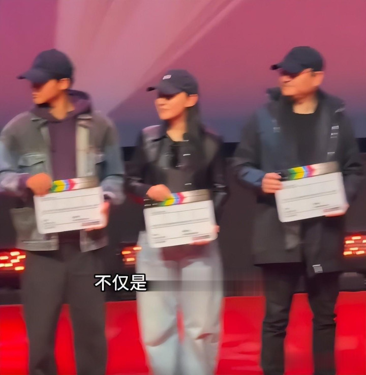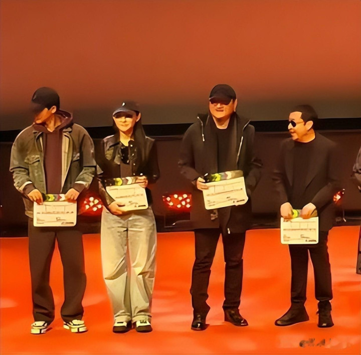 四个人一同合影,状态都很自然,站在台上就像个普通的表演者,没有演员或者是大导演的架子,倒是挺让人圈粉的。