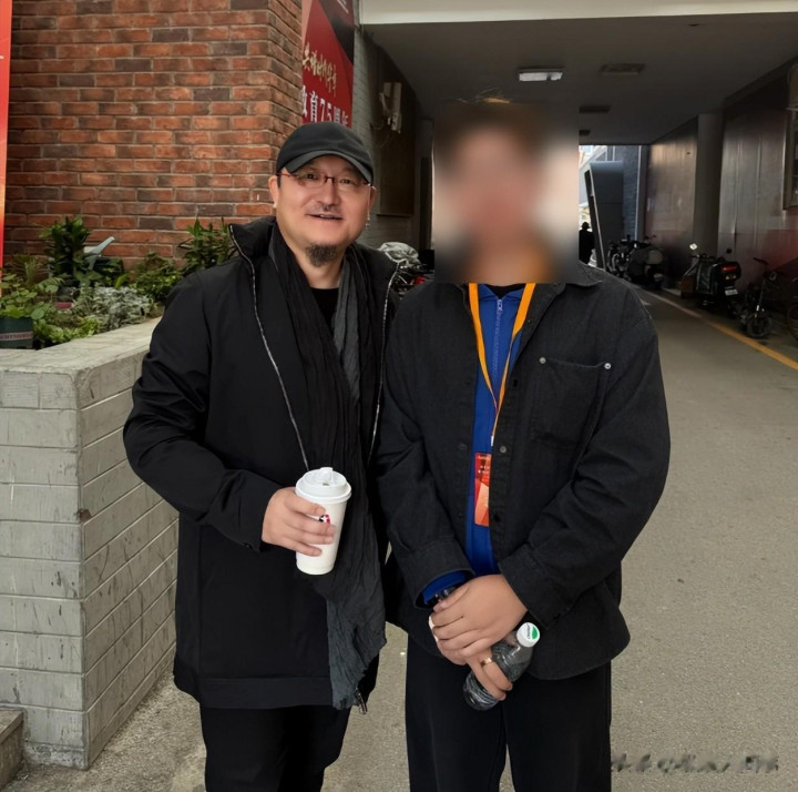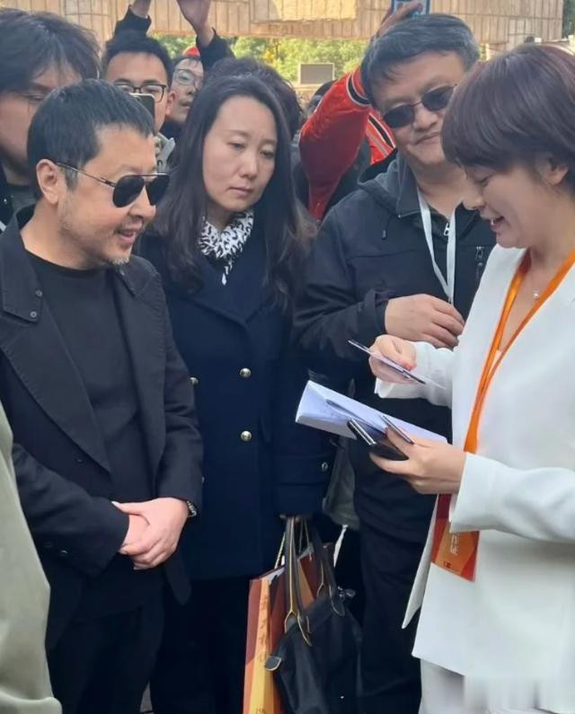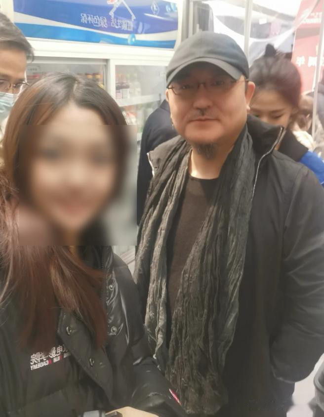 他合影的时候背挺得直,面对镜头笑呵呵的,一点没 “大导演” 的架子。