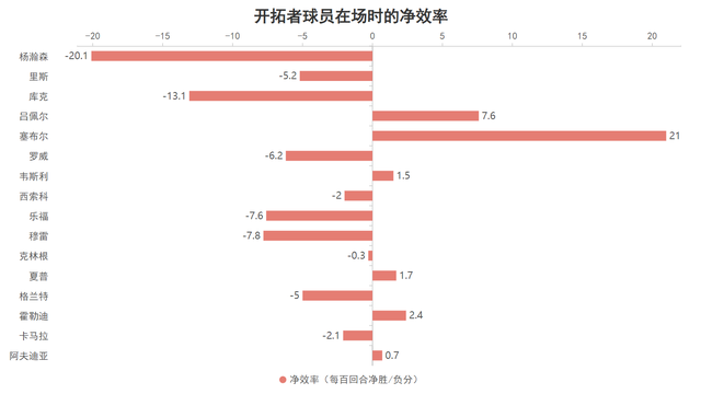 因此出场时间少不代表开拓者对他不够重视也不代表队友“霸凌”不给他传球,至少在出场时他获得了许多机会,出场时间低更多是由于他现在的缺陷导致他在场时会令球队陷入被动。杨瀚森本赛季的净效率为负20.1,在开拓者全队位于倒数第一,这意味着杨瀚森在场时开拓者每百回合会达到每百回合输分最多的状态,这也是教练只要想赢就不敢在常规时间更多使用他的原因。