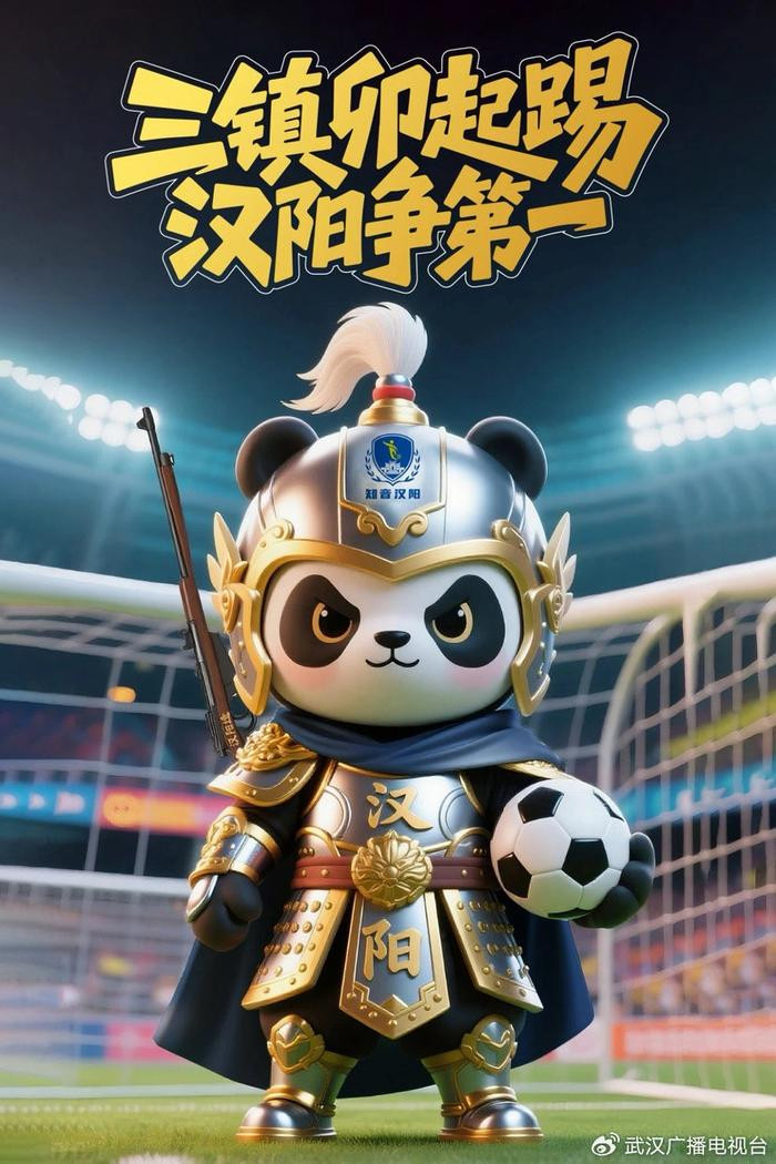 汉阳吉祥物闪亮登场。你问为什么是熊猫?这还用解释嘛!全武汉只有汉阳有大熊猫身披“岳飞铠甲”,肩扛“汉阳造”步枪,凶萌坚毅意气风发!功夫+熊猫+足球,谁与争锋!