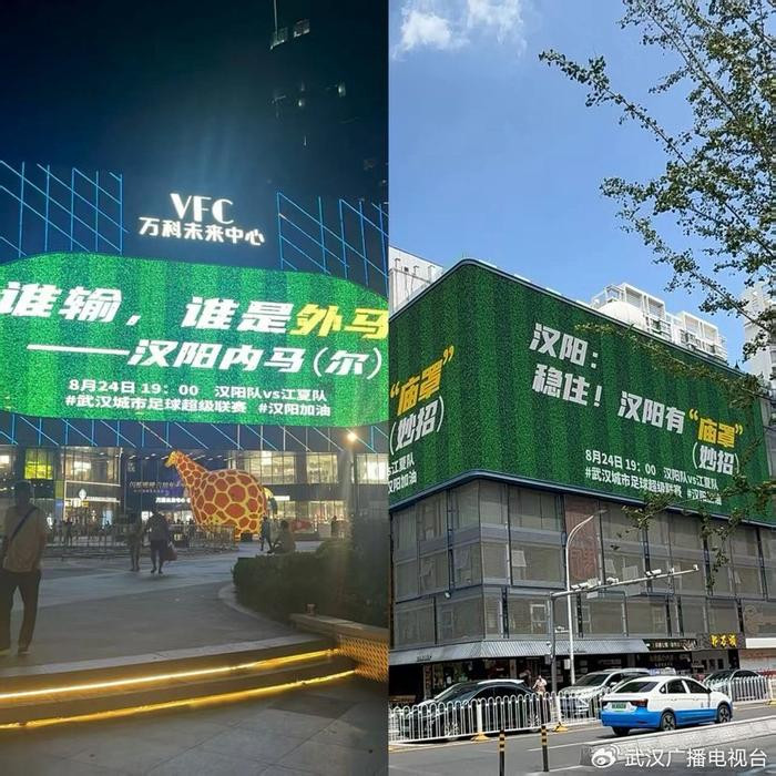 钟家村十字路口、万科未来中心VFC、武汉摩尔城、江腾广场……加油(玩梗)的话语全部都打在最亮的公屏上!为汉阳应援真的是拼了。