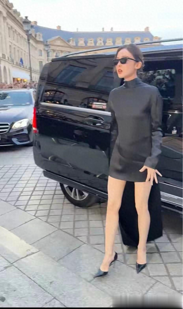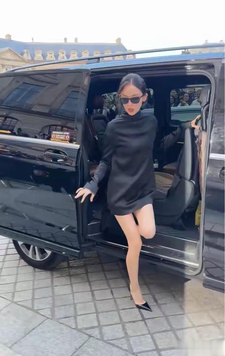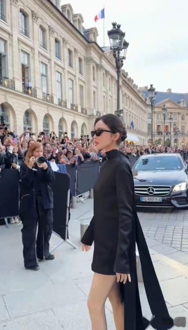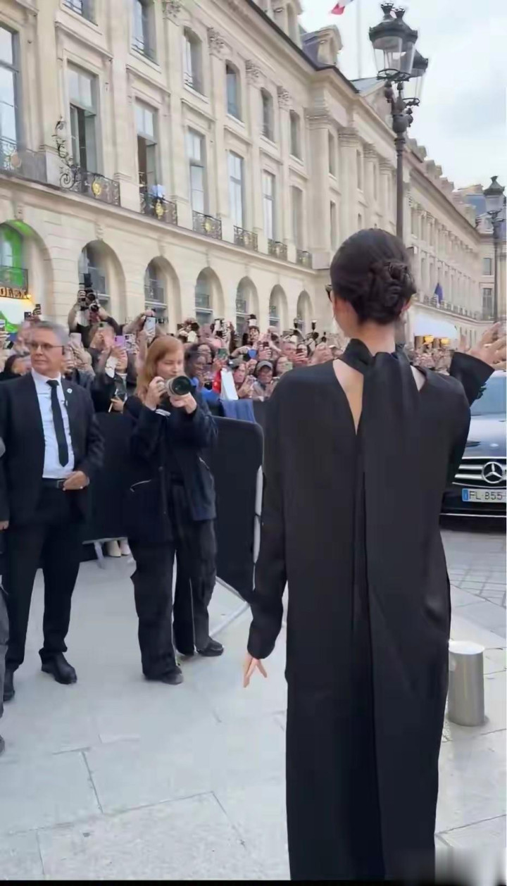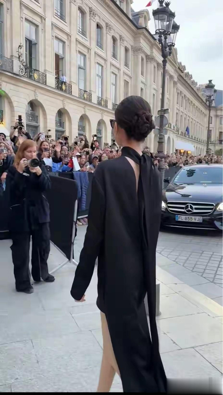 娜扎巴黎时装周上黑短裙加身, 背影绝美, 美得叫人移不开眼!